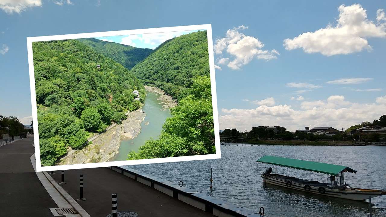 今年で開業30周年の嵯峨野トロッコ列車は旧山陰線の廃線を利用した観光列車です。アールデコ調の客車は木製椅子と裸電球のシンプルな装備で自然の風や音を感じやすくしてくれます。嵯峨駅から亀岡駅までの片道7.3km。車窓に広がる保津川沿いの渓谷美を楽しみましょう。写真映えできる箇所での停車や減速は観光車両ならではのだいご味です。春の桜、夏の新緑、秋の紅葉、冬の雪景色と、四季それぞれの風景を楽しんで頂けます。亀岡からの折り返しは保津川下りです。右手に京都の高峰、愛宕山を左手にはトロッコ列車と風情があることは勿論、途中の激流を通り過ぎる水しぶきに心も体も高揚してくることでしょう。揺れる船首から見え隠れする岩山や周囲の峰々は四季を通してさまざまな表情を見せてくれます。少し緊張が続くと、そこはかとなく船頭さんのウィット溢れる解説に船内の笑いが止みません。約1時間半の乗船ですが時間が経つのも忘れて堪能できる京都随一のアトラクションと言っても過言ではありません。